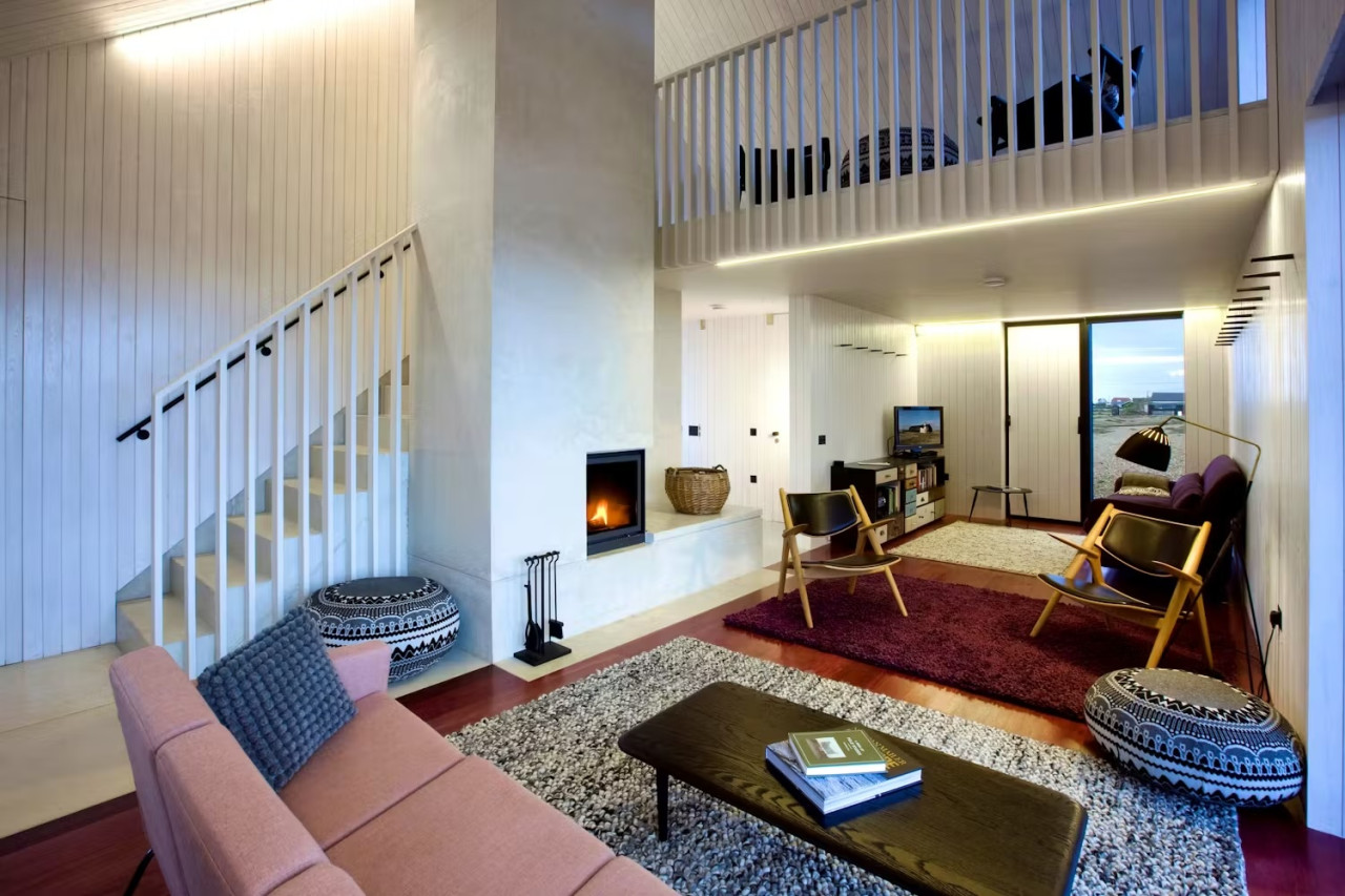 Dit architectonische huis, ontworpen door de veelgeprezen Schotse architectuurstudio NORD (Northern Office for Research and Design), ligt direct aan het kiezelstrand van Dungeness in Kent, vlakbij Romney Marsh. Dit unieke kustverblijf ligt in een van de meest opvallende en poëtische landschappen van Engeland en mengt hedendaags design met de rauwe schoonheid van de natuurlijke omgeving.