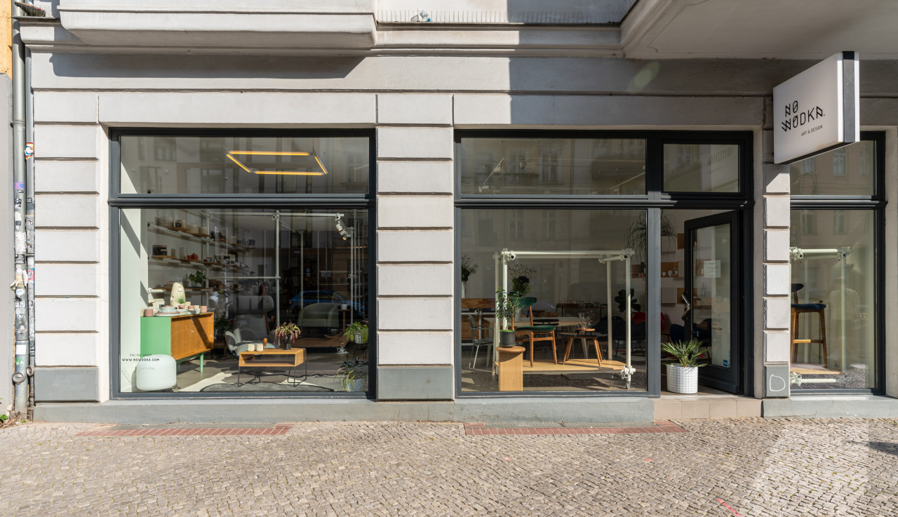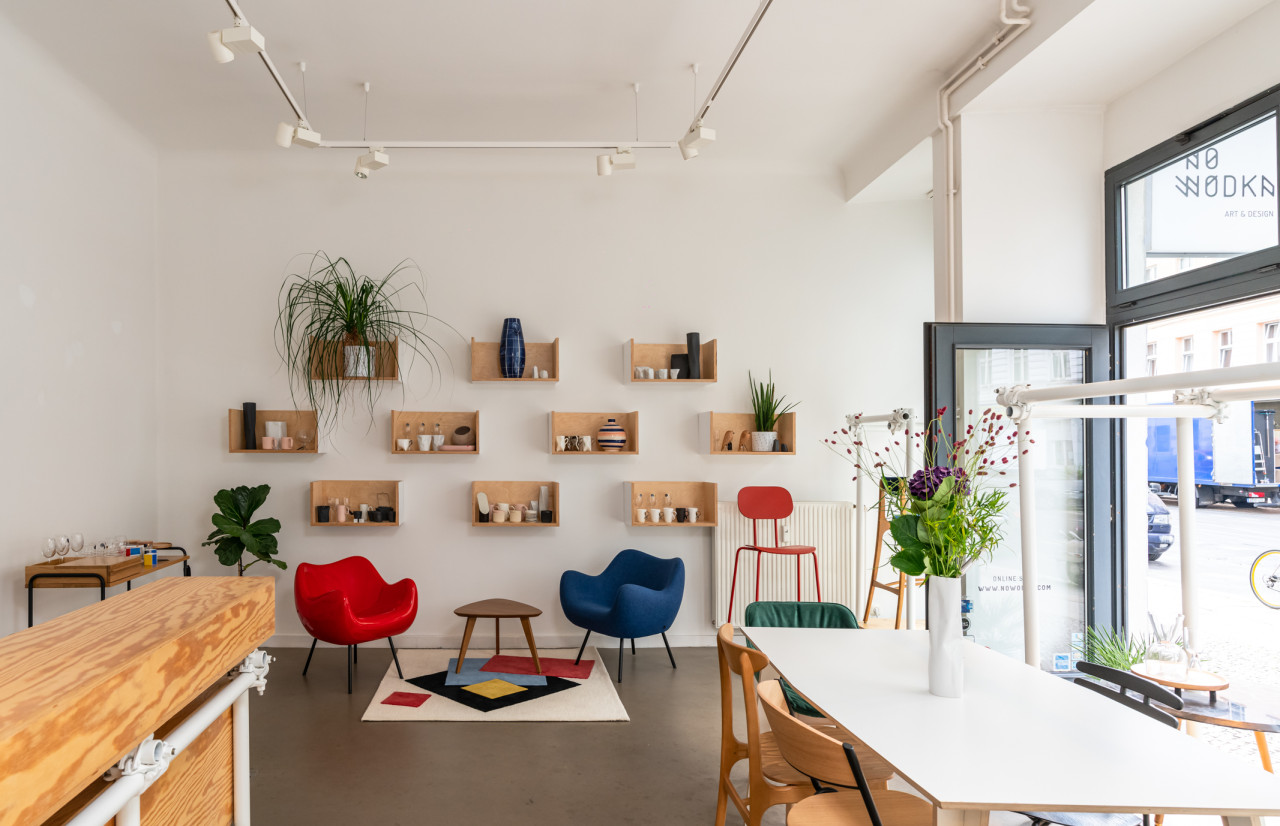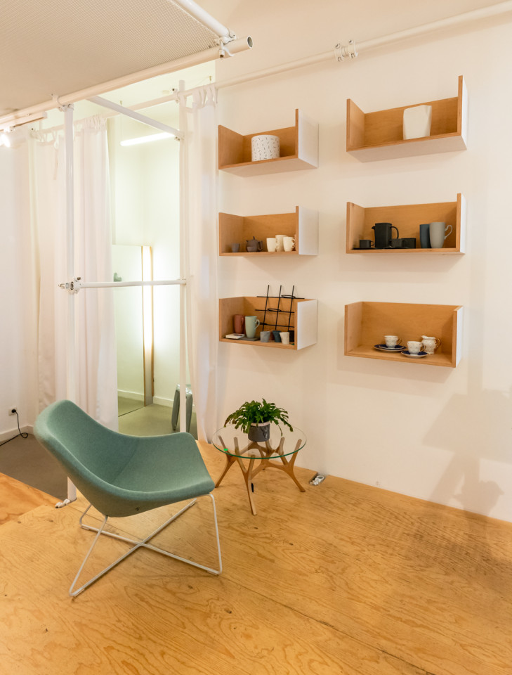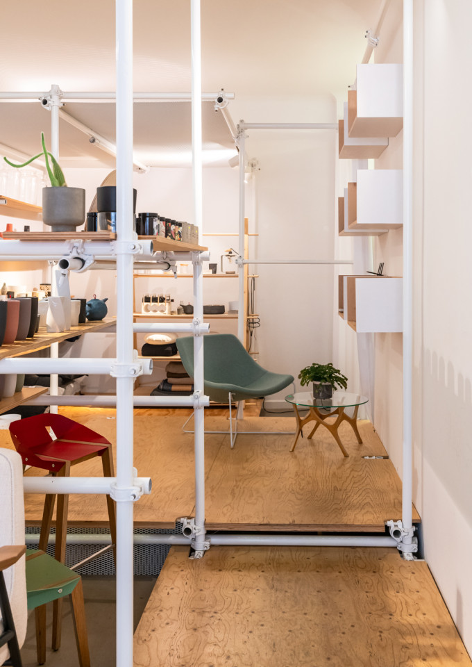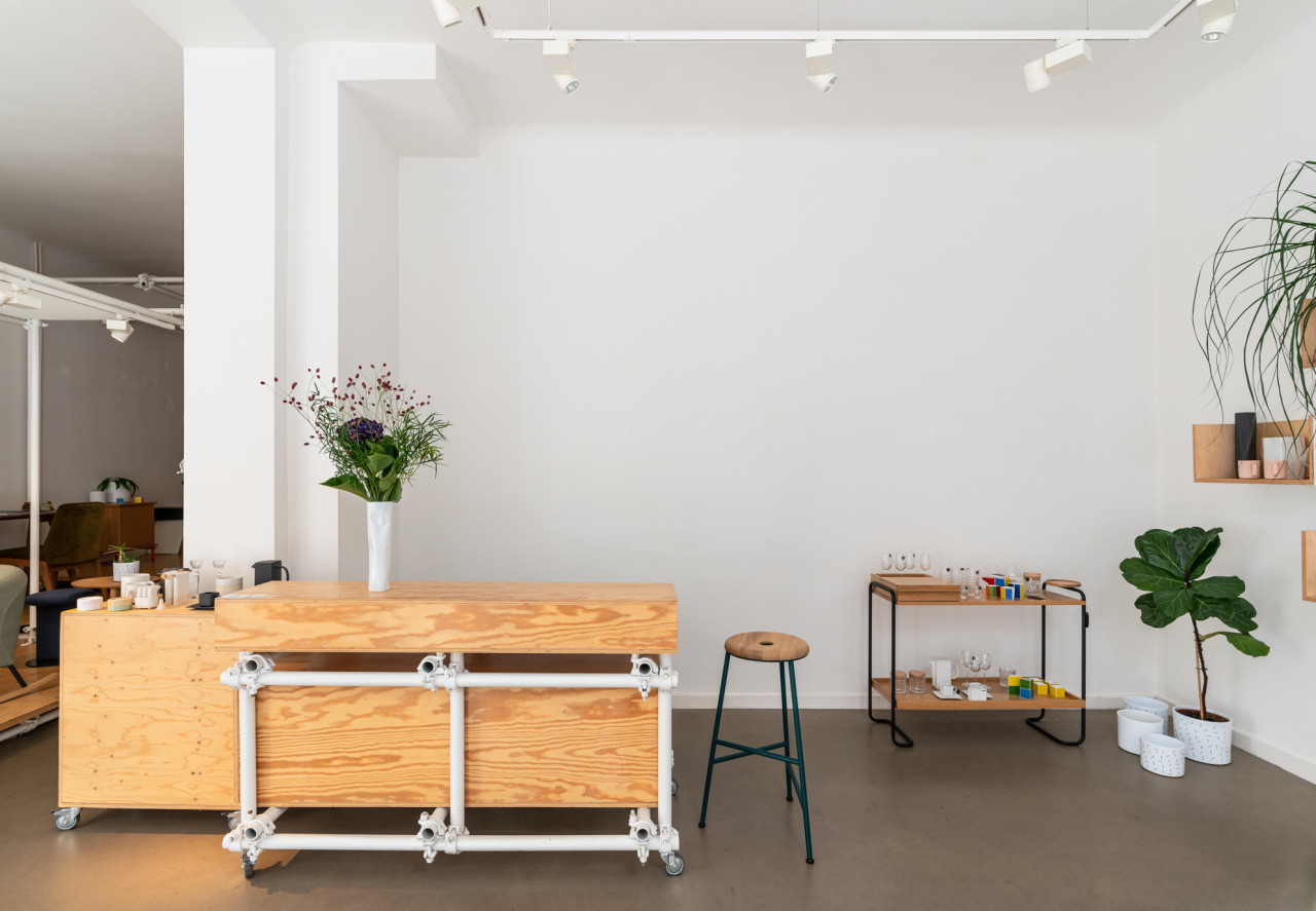 With its orderly shelving, elegant arrangement of ceramics and books, and seamless blend of polished, fabric, and velvety textures, the setting evokes a modern design studio or boutique café, perfectly attuned to creative industry demands. The marriage of urban street views with an atmosphere of calm openness renders the space highly photogenic, offering versatile backdrops for still and moving image work. This environment, both inviting and quietly dramatic, is ideally suited for artistic collaborations, product launches, styled shoots, and brand-driven events seeking an elevated, design-conscious setting.