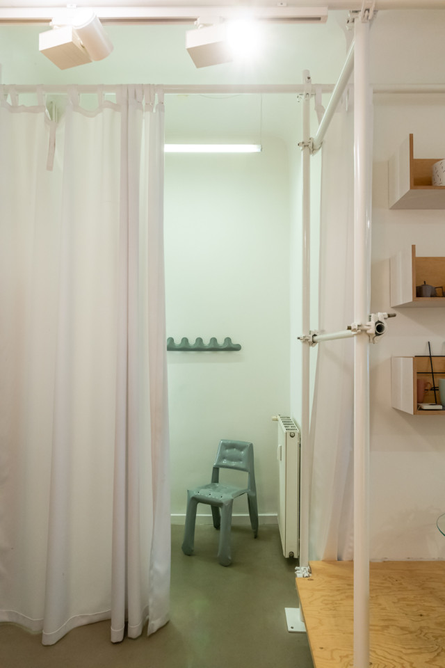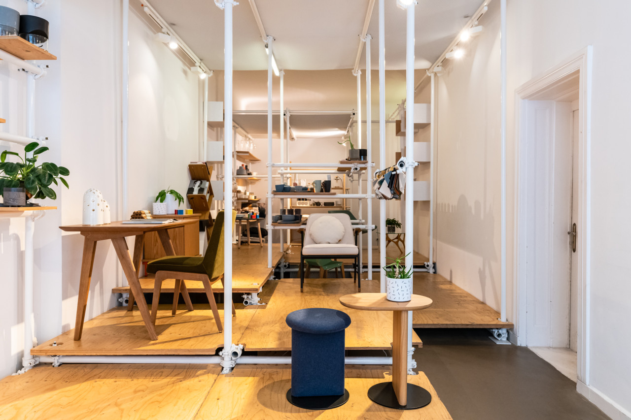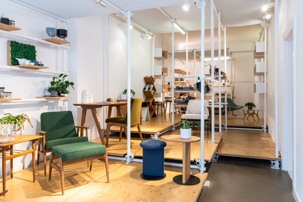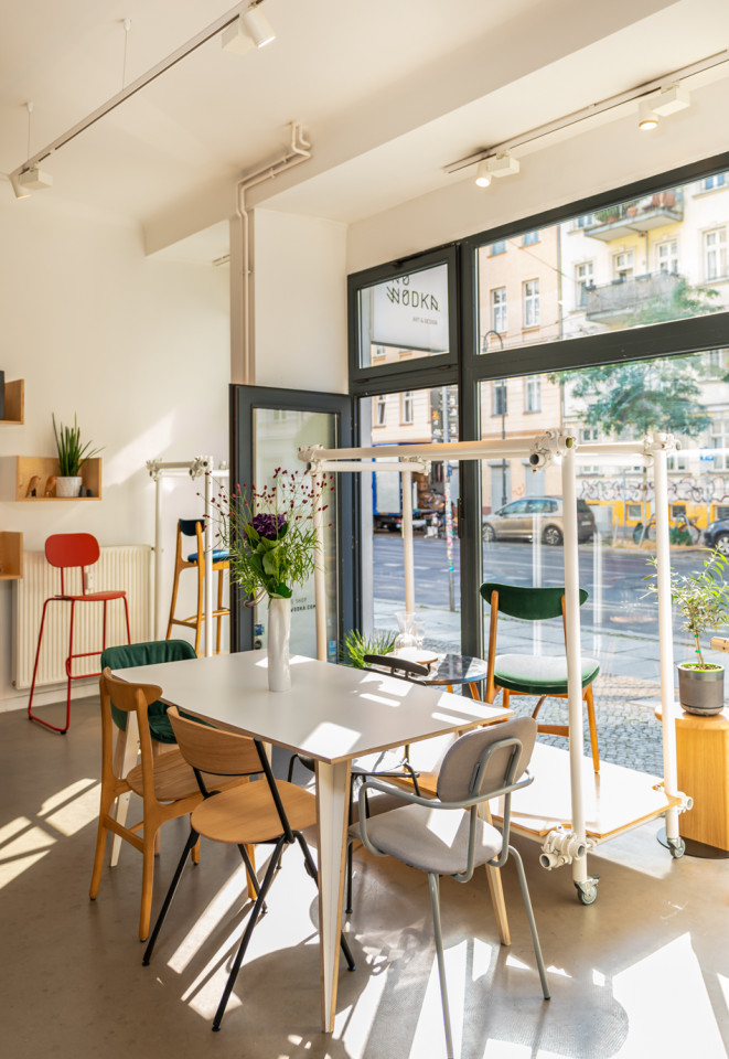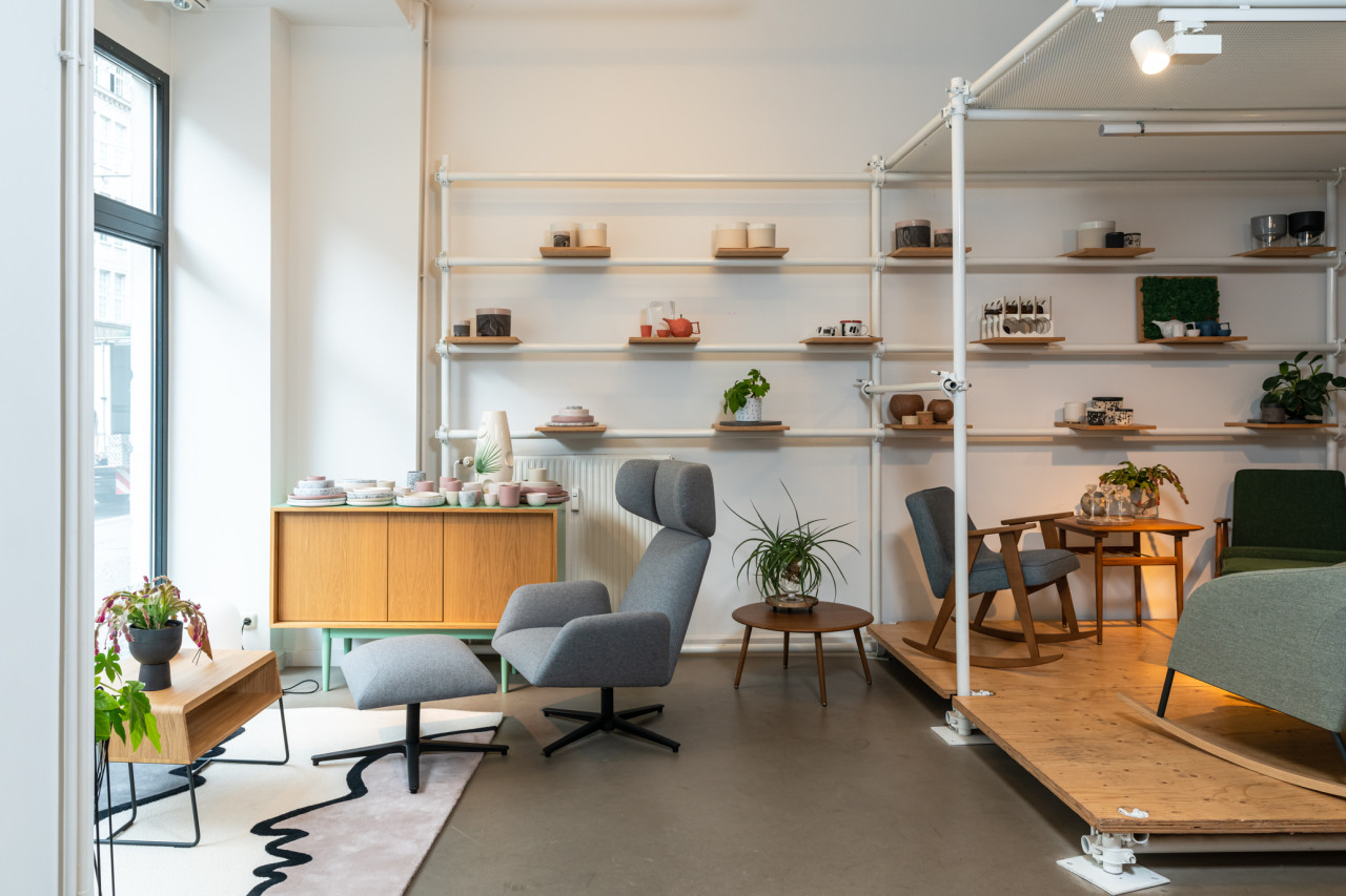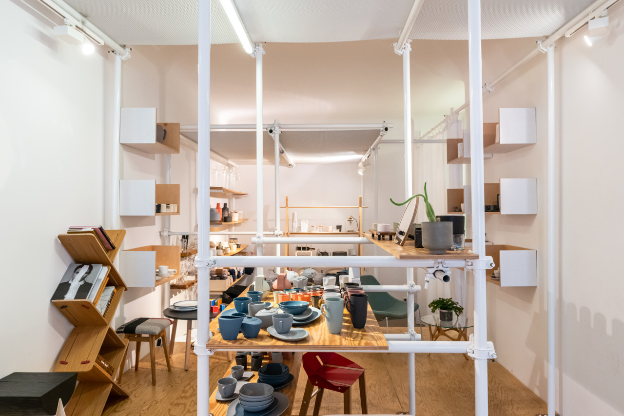 With its orderly shelving, elegant arrangement of ceramics and books, and seamless blend of polished, fabric, and velvety textures, the setting evokes a modern design studio or boutique café, perfectly attuned to creative industry demands. The marriage of urban street views with an atmosphere of calm openness renders the space highly photogenic, offering versatile backdrops for still and moving image work. This environment, both inviting and quietly dramatic, is ideally suited for artistic collaborations, product launches, styled shoots, and brand-driven events seeking an elevated, design-conscious setting.