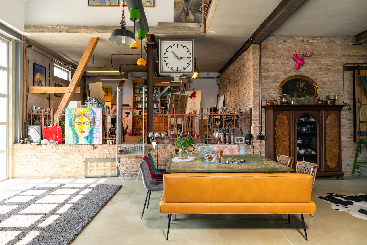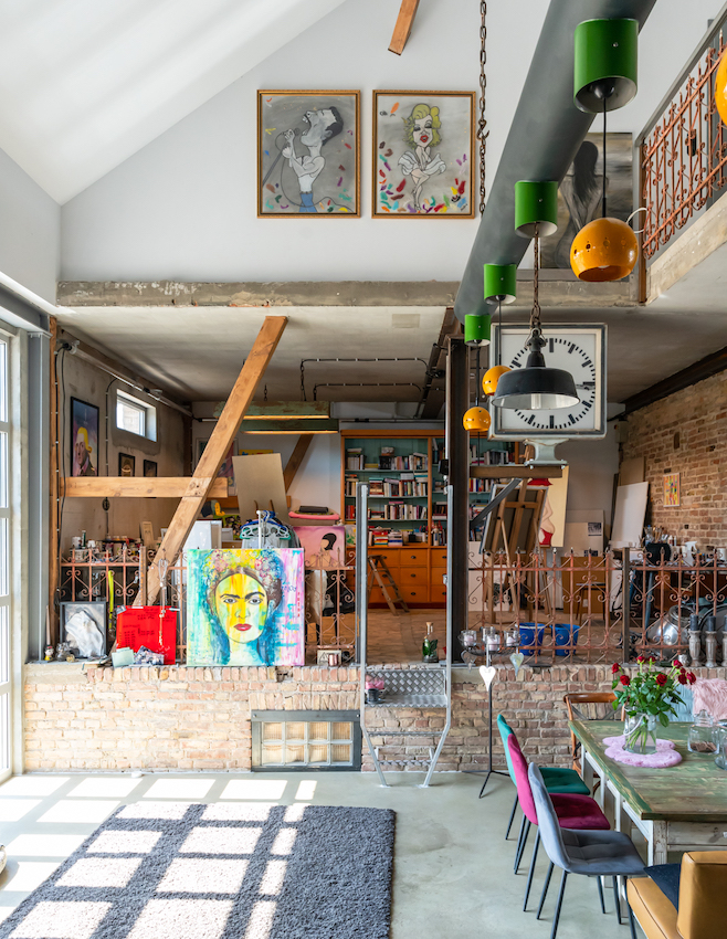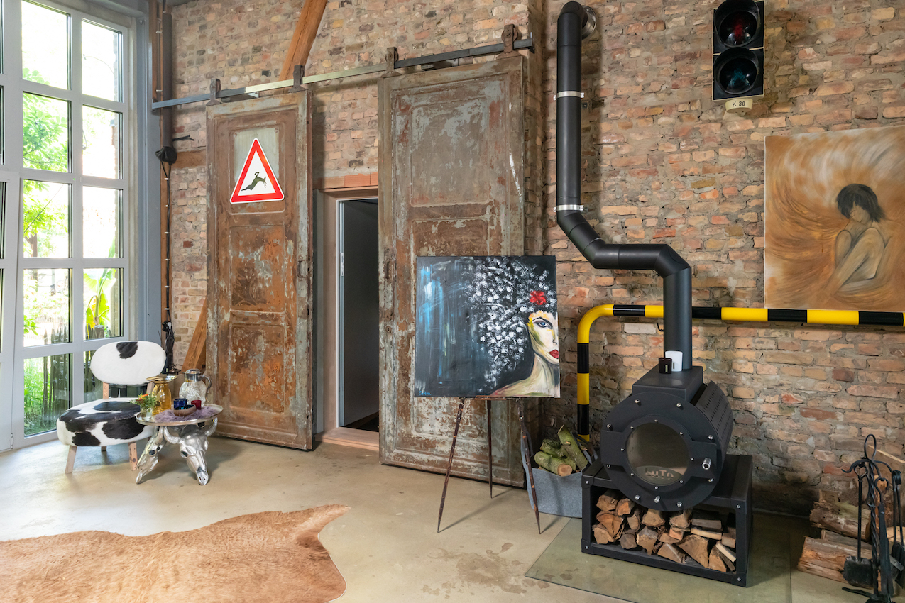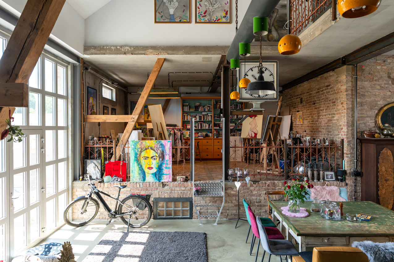 Deze unieke verbouwde schuur is ideaal voor allerlei producties en filmdoeleinden, want de benedenverdieping heeft een ruime open indeling met een moderne keuken en een uitnodigende woonkamer. Boven vind je een charmant slaapgedeelte met een bad en een aangrenzende badkamer, alles doordacht ontworpen in een open lay-out.