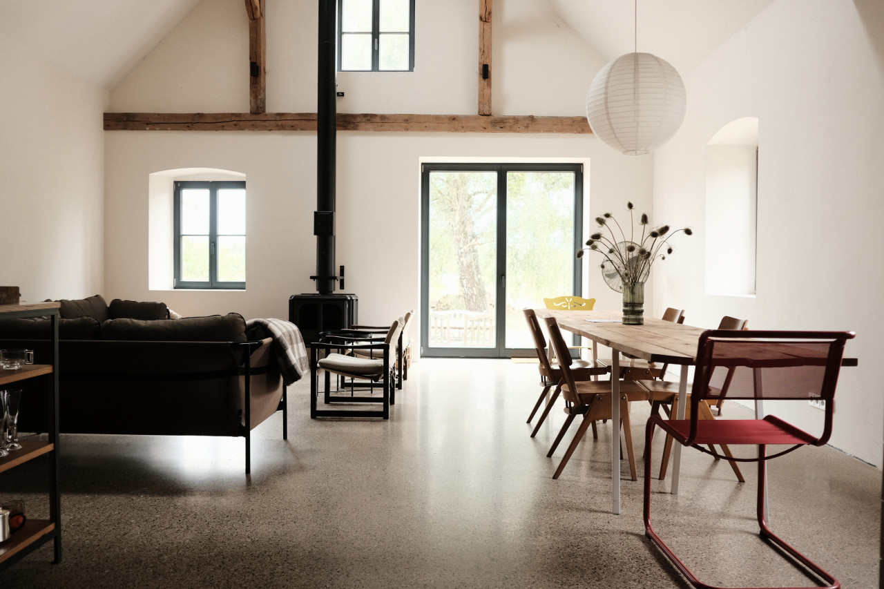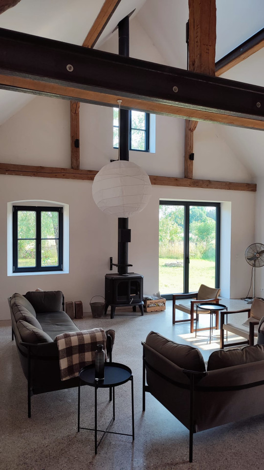Deze verbouwde stal biedt een uitzonderlijke en stijlvolle omgeving voor allerlei evenementen of producties. Met zijn hoge plafonds, terrazzovloeren en open indeling is het'een ruimte die zowel veelzijdig als visueel verbluffend is.