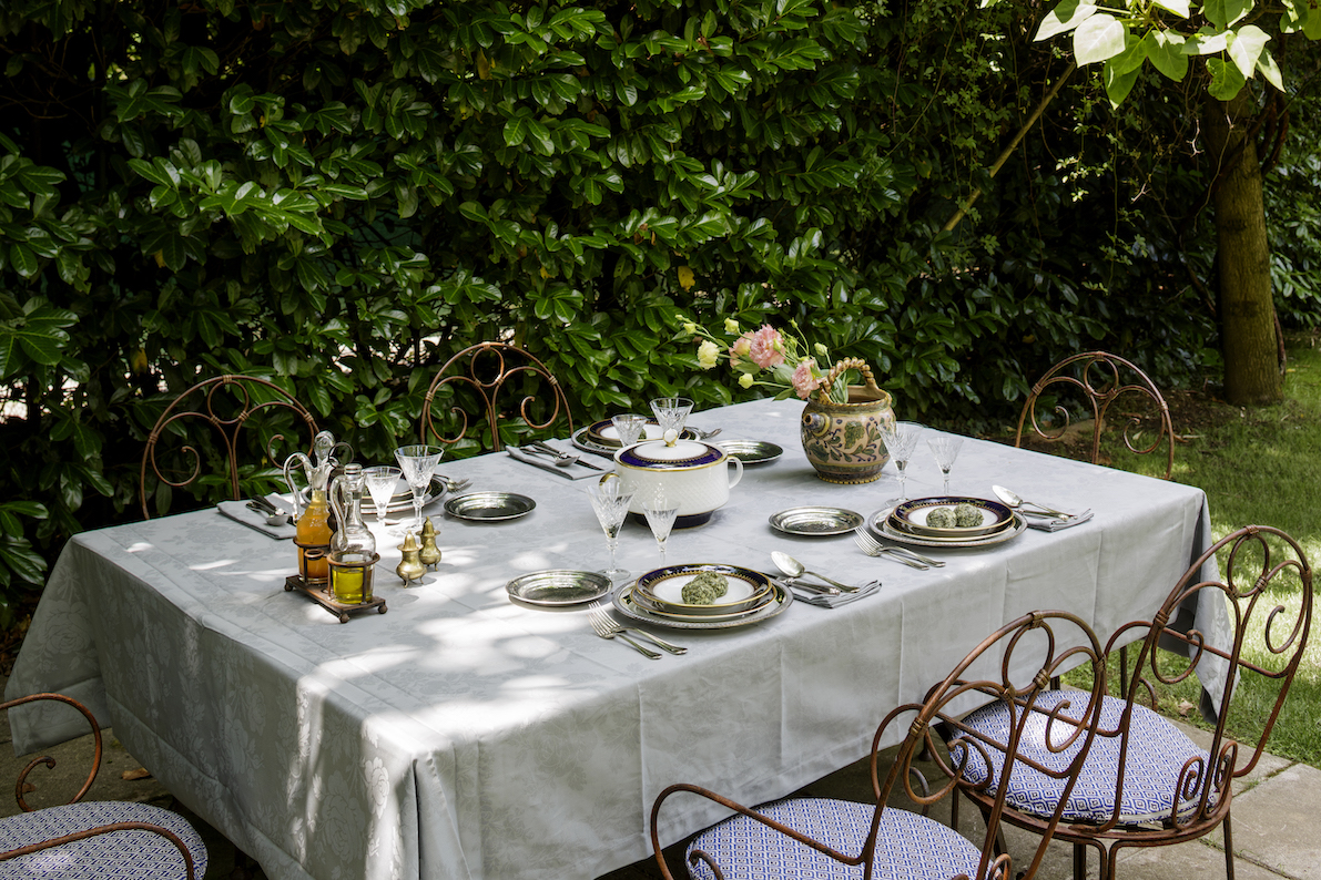 Villa Ottagonale, gekleed in lichtroze met een neoklassieke structuur, is een van de twee zielen die uitkijken op het meer vol lotussen en waterlelies. Grote Franse ramen openen naar de met bloemen overdekte patio die verlicht wordt door ijzeren lampen op gereserveerde en enigszins geheime tafels. Ingericht met gratie en romantiek, wisselt het af tussen gedempte kleuren en de sterkere tinten van natuurlijk groen. De woonkamer, omringd door nissen en neoklassieke vazen, kijkt uit over de patio en de oever van het meer, en is perfect voor zomeravonden, winterochtenden, aperitieven en diners. De veranda, die wordt gebruikt als eetkamer, is zowel binnen als buiten gecamoufleerd door de natuur: bloemen en bladeren achtervolgen elkaar tussen de wijnbladeren en de binnenmuren, versierd met hetzelfde gebladerte.