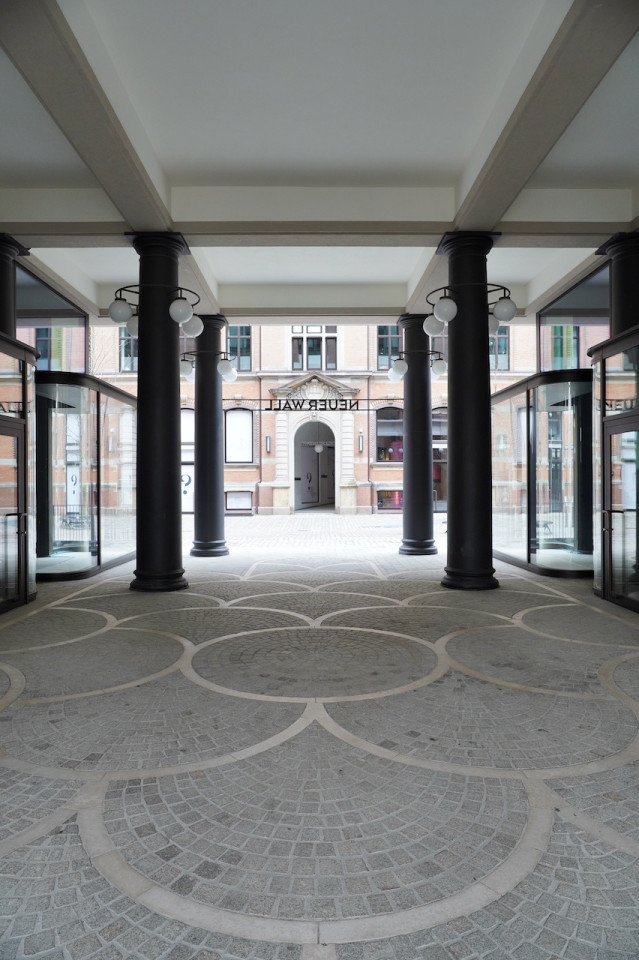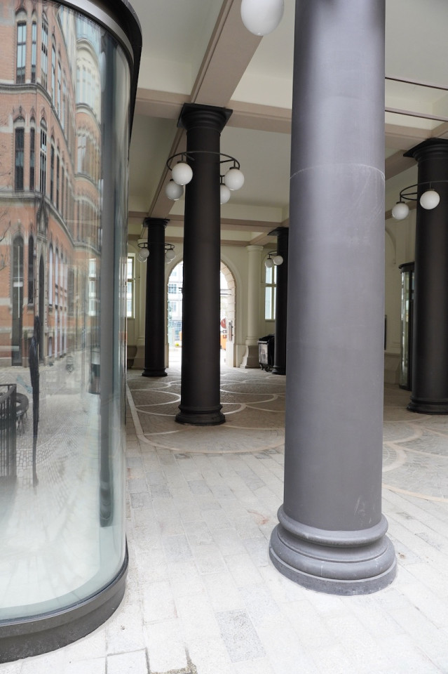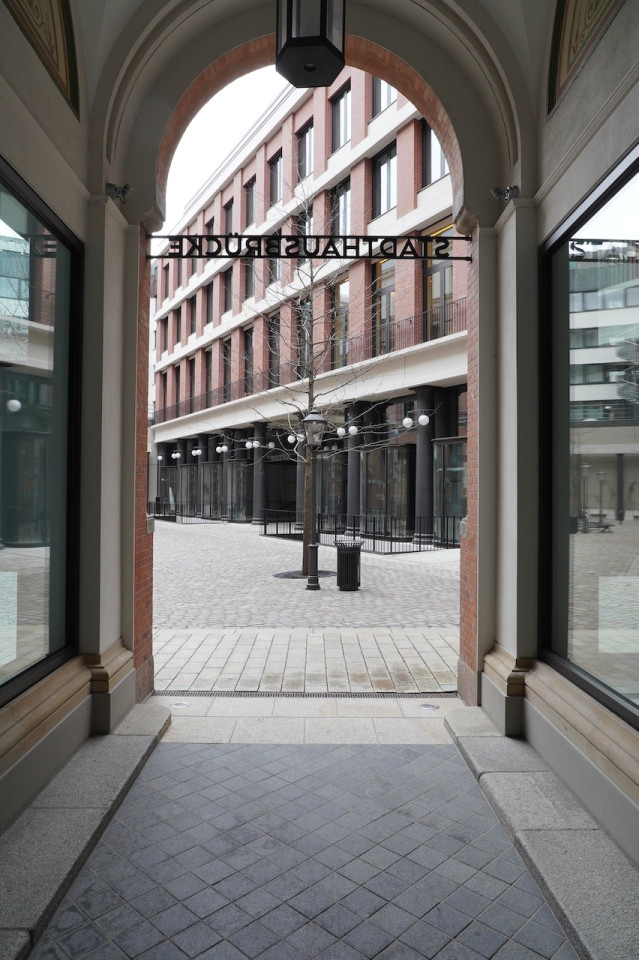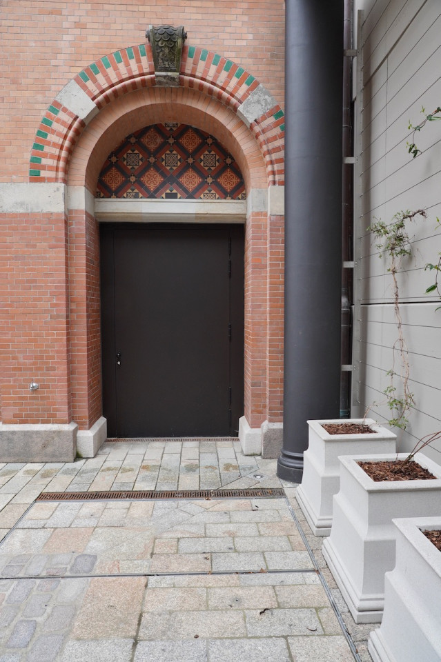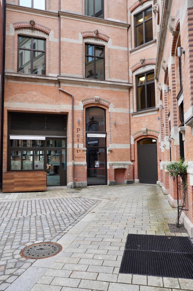 Dit uitzonderlijke pand ligt in een serene historische wijk en biedt een unieke mix van traditionele en moderne architecturale elementen, waardoor een pittoresk stedelijk toevluchtsoord ontstaat. De buitenkant van het gebouw heeft klassieke rode bakstenen muren en geplaveide straten, aangevuld met moderne glazen structuren die een eigentijdse flair toevoegen. Een rustige binnenplaats, versierd met bankjes en weelderig groen, zet een rustige toon en nodigt uit tot rustige momenten van contemplatie of ontspannen wandelingen. Keienpaden met zachte lampverlichting en zacht groeiende planten leiden naar sierlijke bakstenen bogen, die het charmante karakter en de historische uitstraling van het pand versterken.