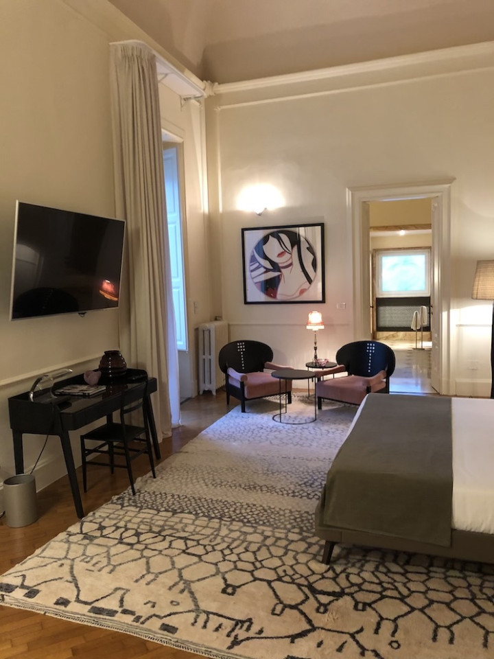Dompel jezelf onder in de belichaming van klassieke elegantie en serene luxe in dit fascinerende pand, met zorgvuldig samengestelde ruimtes die historische charme combineren met moderne verfijning. Als je door de poort naar de grote binnenplaats stapt, worden je zintuigen begroet door de majestueuze stenen fontein en het weelderige groen, perfect geaccentueerd door de klassieke architectuur van een historisch gebouw, delicate smeedijzeren details en een dramatische kroonluchter. Deze serene oase dient als een prachtige introductie tot de rustige en pittoreske omgeving die je overal in het verblijf aantreft. Binnen heeft elke kamer een uniek karakter, van de luxe marmeren badkamer met zijn sierlijke boog en weelderige bad tot de pluche, met fluweel versierde woonkamers met klassieke houten meubels en zachte sfeerverlichting. Kunstliefhebbers en verzamelaars zullen genieten van de exclusieve kunstgalerie van het pand met reflecterende groene kasten en zorgvuldig uitgestalde sculpturen, die een sfeer creëren met een mysterieuze maar uitnodigende allure. Het pand beschikt verder over elegante slaapkamers, minimalistisch maar warm ingericht met weelderig textiel en subtiele artistieke accenten, die een perfect toevluchtsoord vormen voor ontspanning en rust. Dit huis is ontworpen voor mensen met een voorliefde voor erfgoed en verfijnd wonen. Het is een harmonieuze mix van comfort, stijl en een historisch verhaal en belooft een levensstijl van exquise weelde en ongestoorde rust.