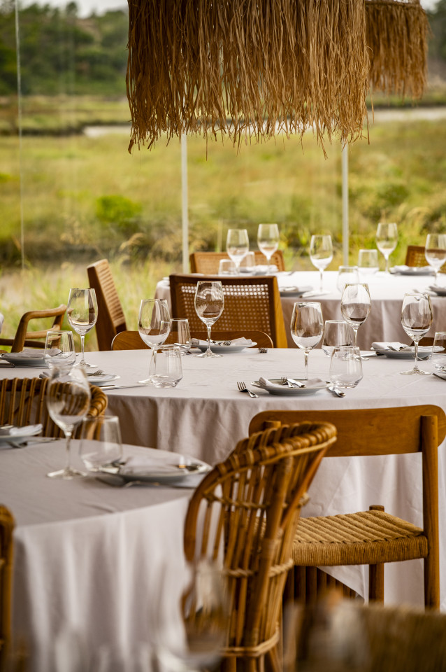 Deze locatie ligt boven de adembenemende monding van de Sado en biedt een adembenemend uitzicht, waardoor het een ideale omgeving is voor fotoshoots, filmproducties en exclusieve evenementen. Het heeft twee elegante eetzalen die gecombineerd kunnen worden tot één grote ruimte en biedt plaats aan maximaal 100 gasten - perfect voor zowel intieme bijeenkomsten als grotere vieringen.